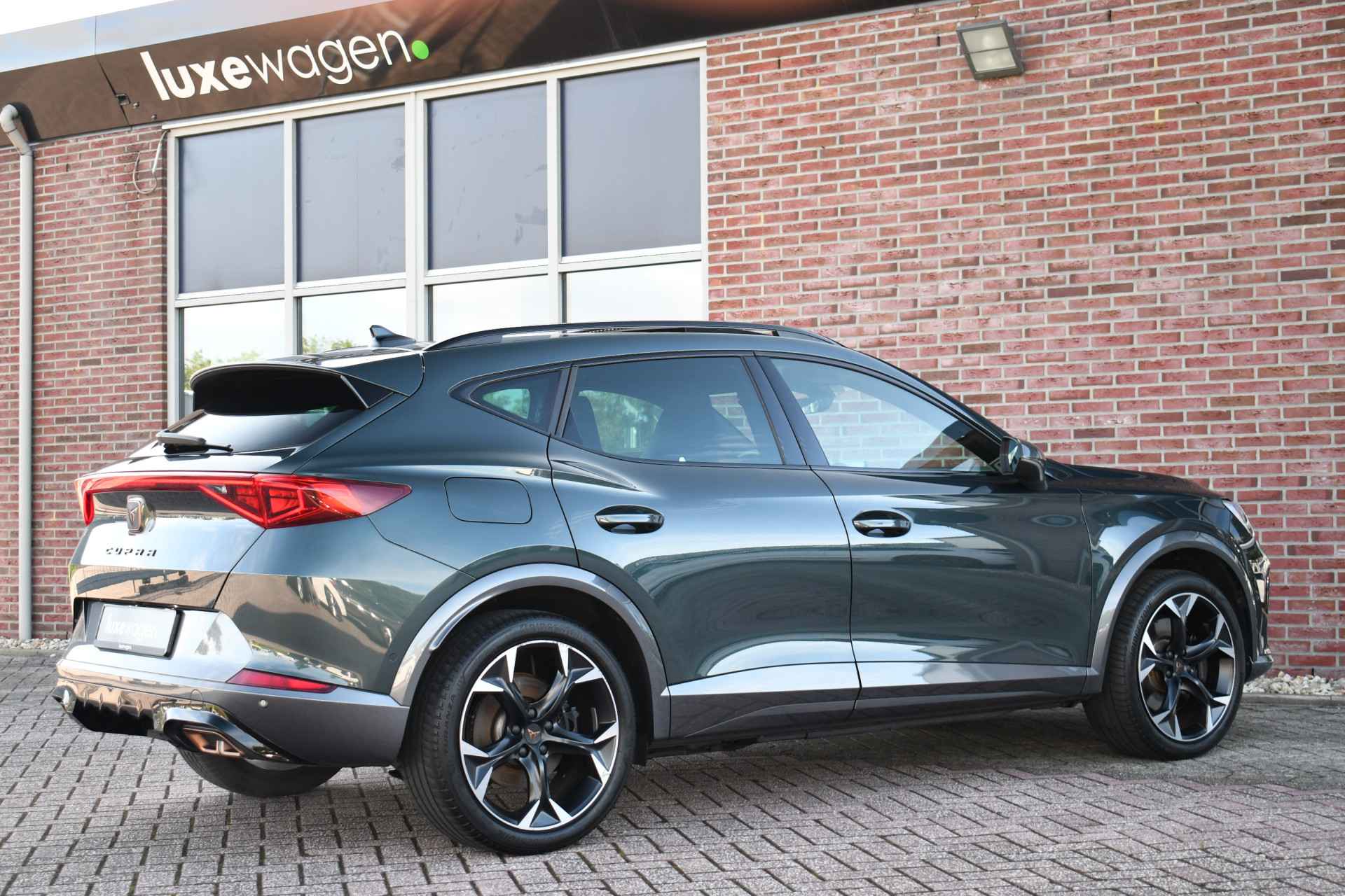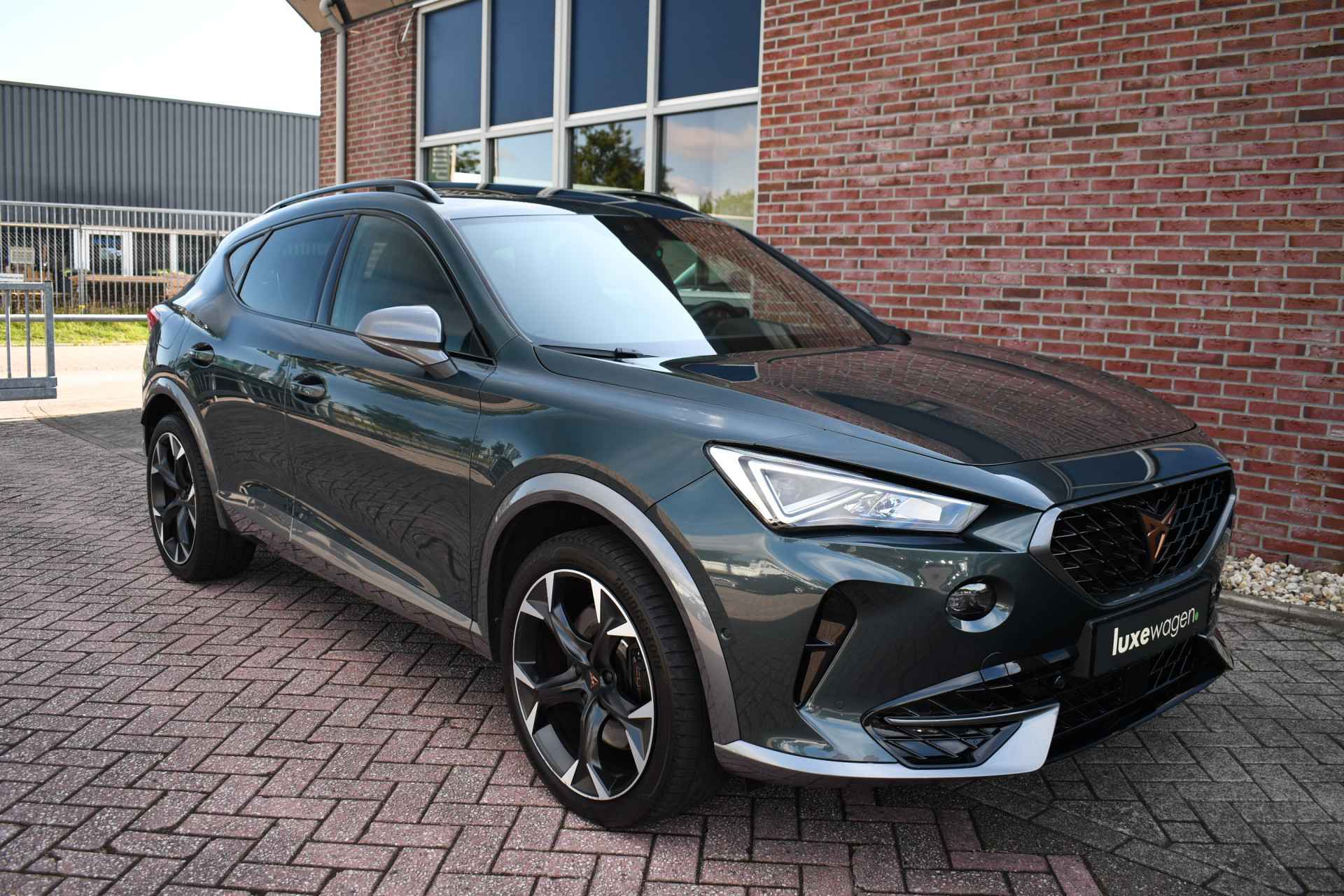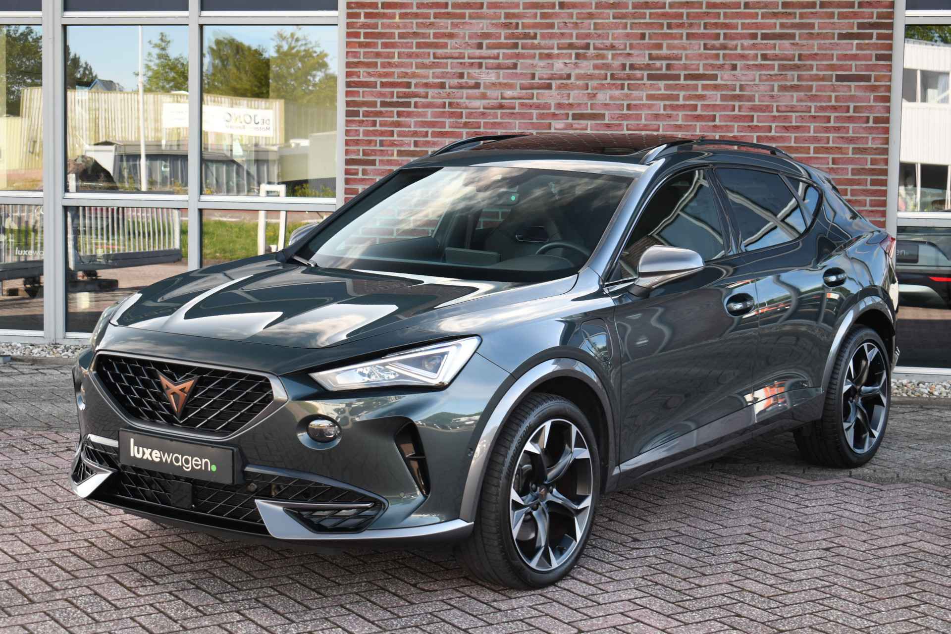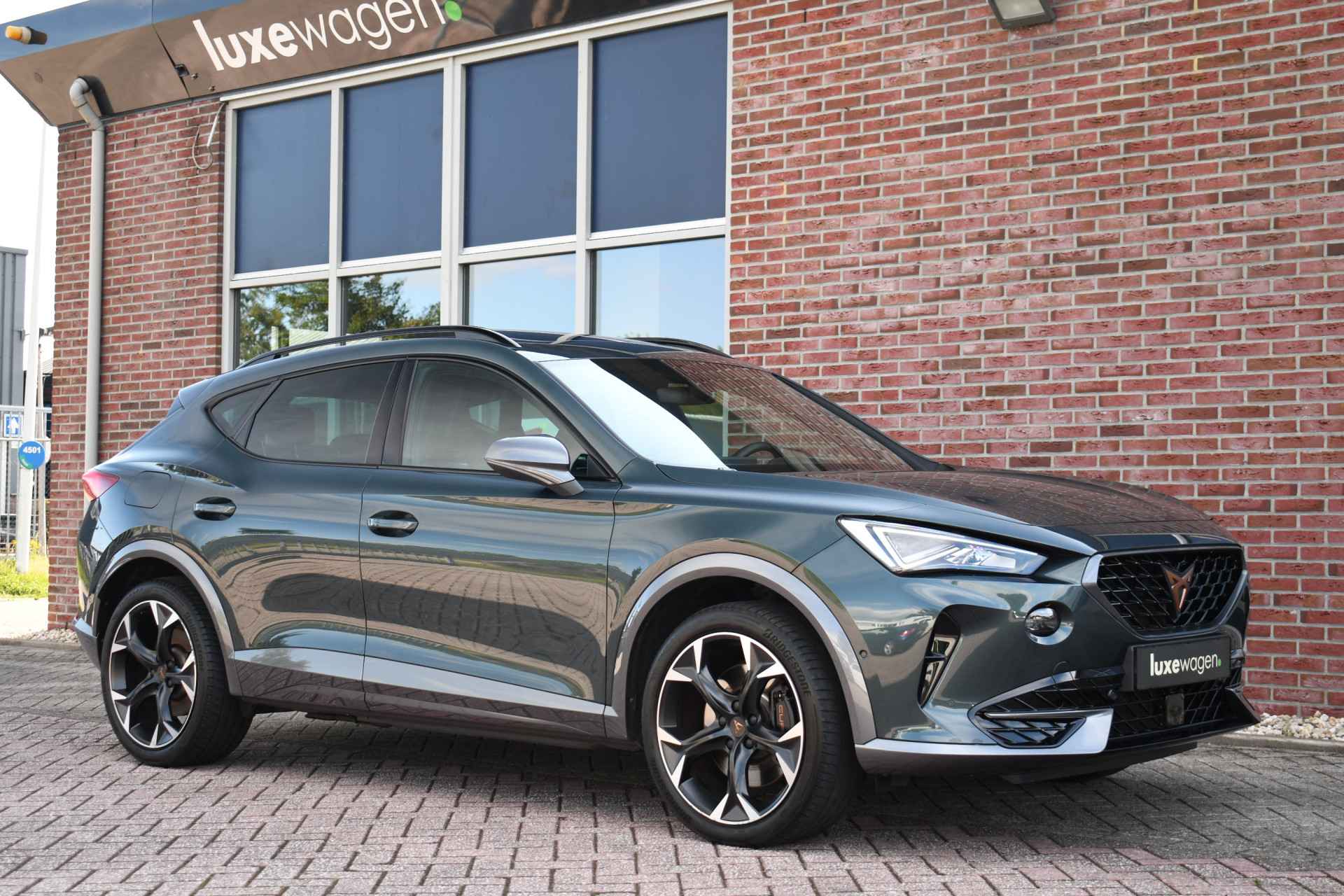Deze volle Cupra Formentor VZ (met 245pk sterke hybride motor) is uitgevoerd in de kleur Dark-Camouflage en het betreft een BTW-auto, dus ondernemers kunnen de BTW terugvragen. Compleet met o.a. panoramadak, afneembare trekhaak (1500kg trekken), adaptieve cruise, adaptieve demping DCC, achteruitrijcamera, 19inch velgen, etc.