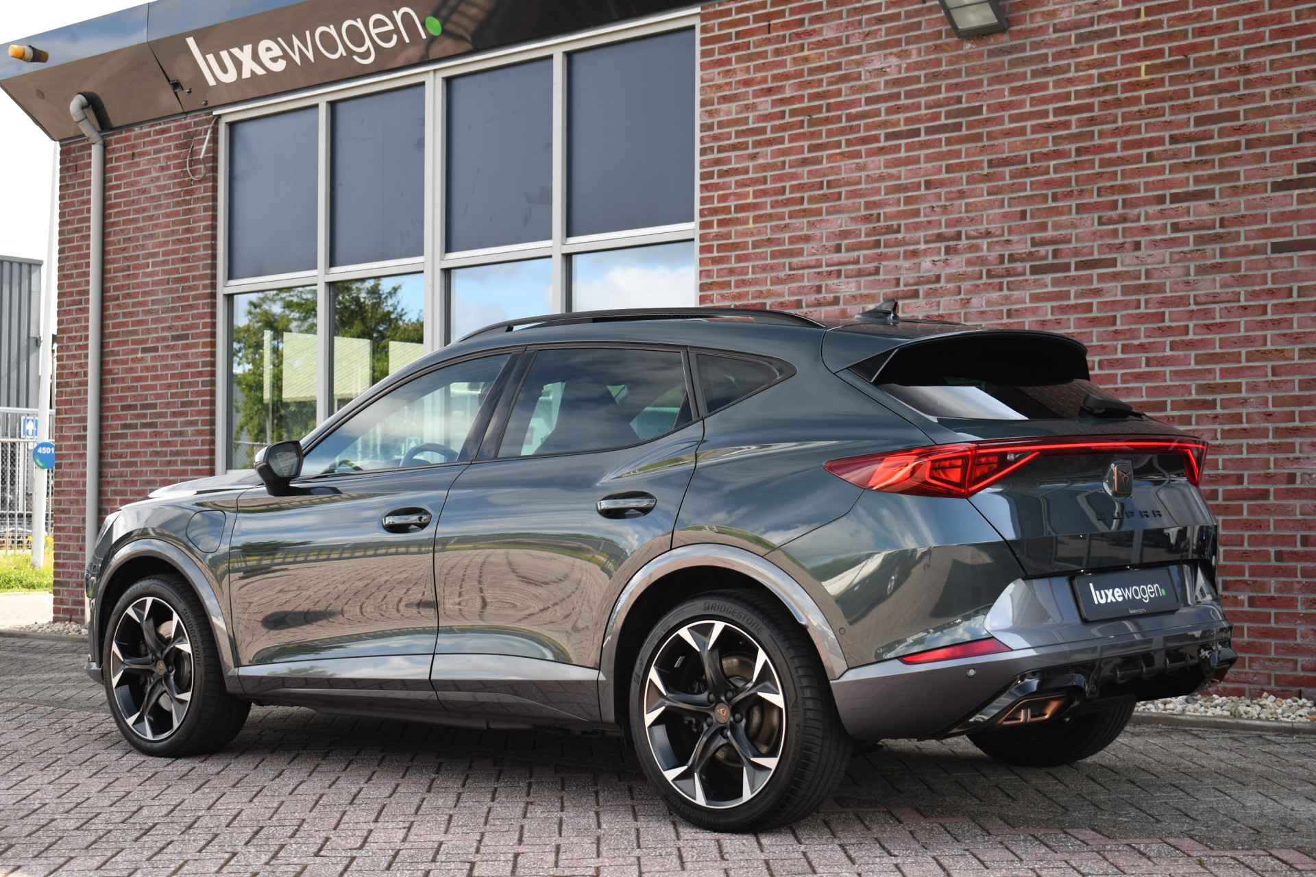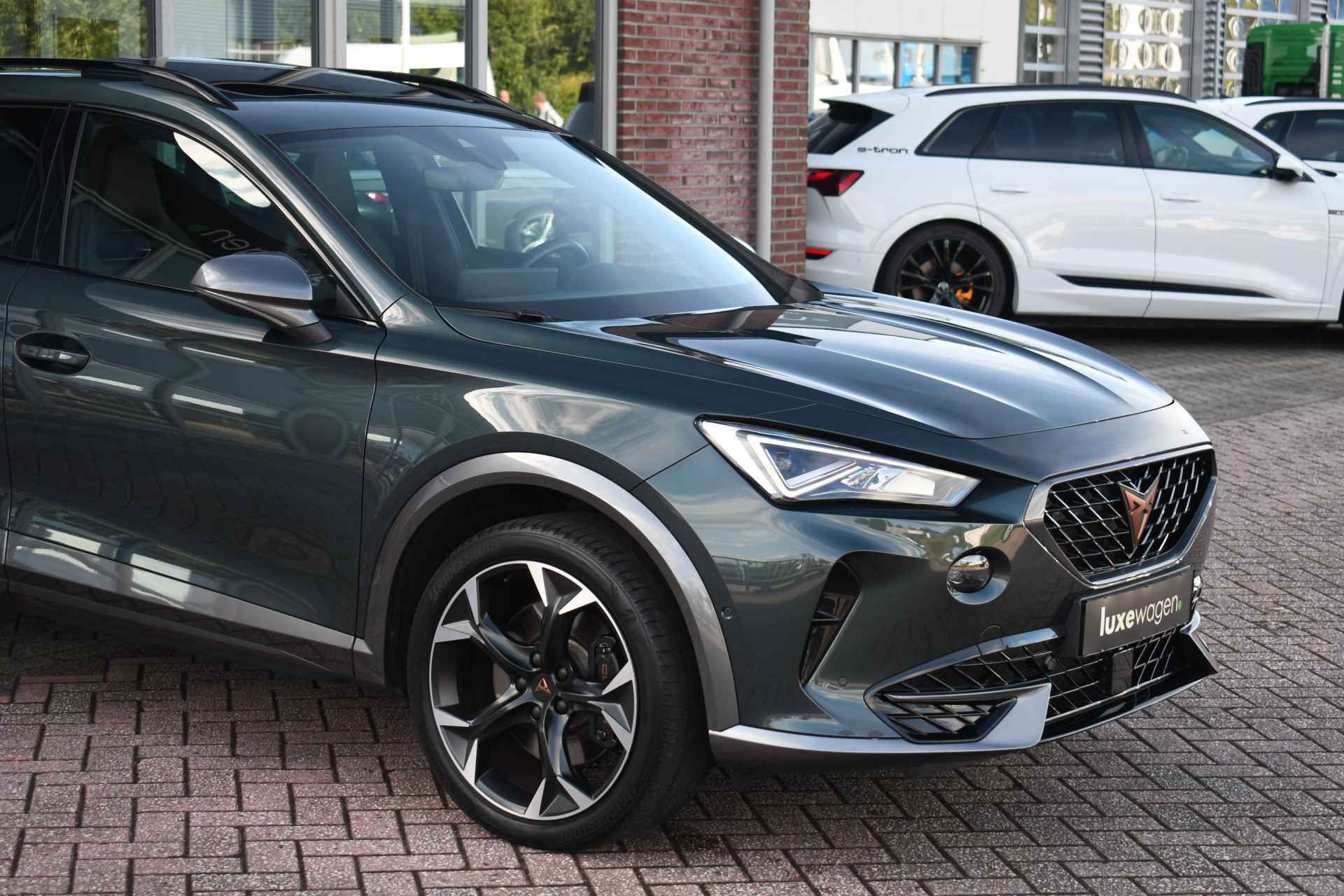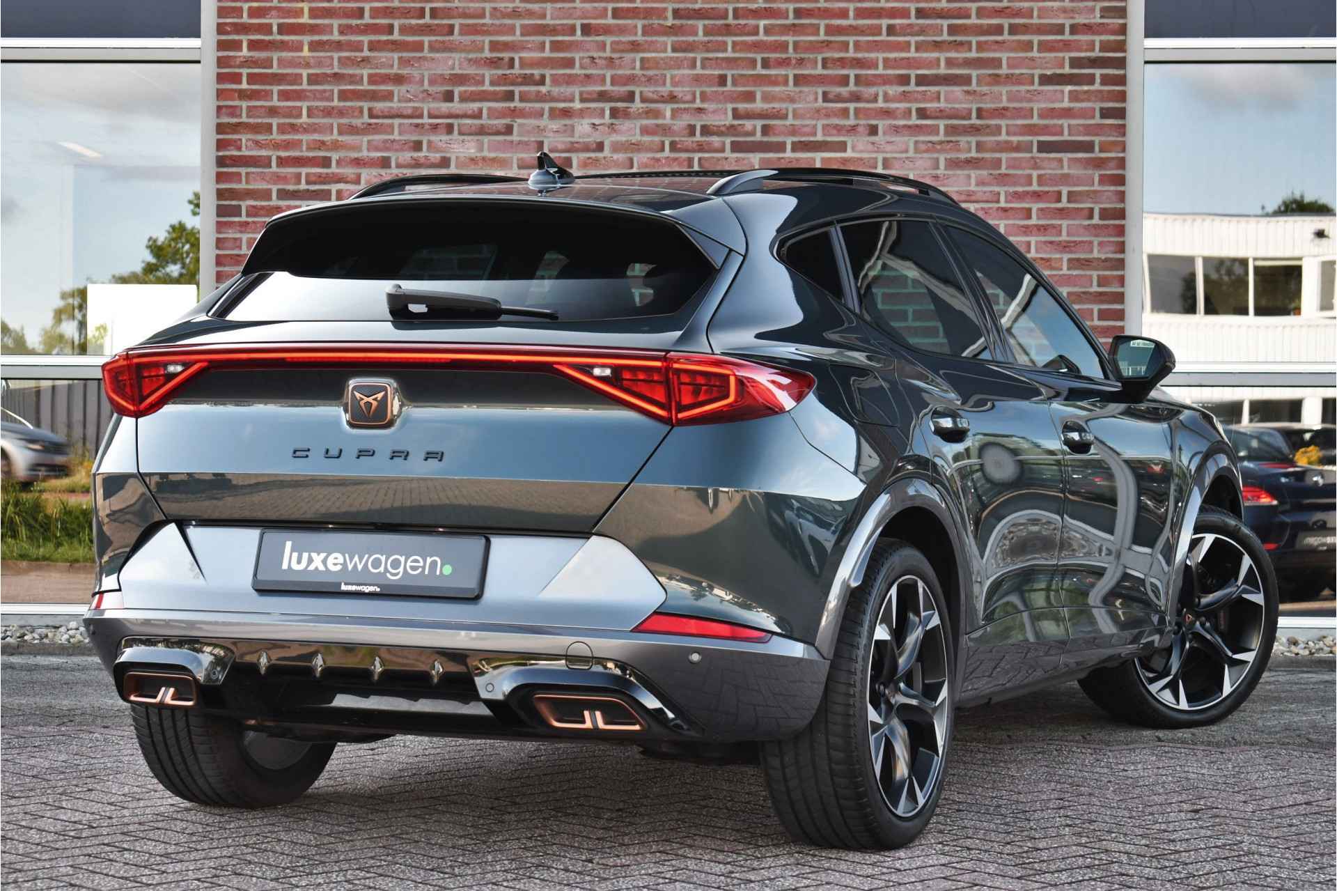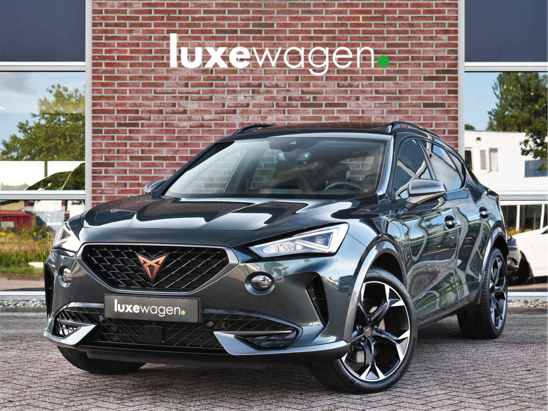 Deze volle Cupra Formentor VZ (met 245pk sterke hybride motor) is uitgevoerd in de kleur Dark-Camouflage en het betreft een BTW-auto, dus ondernemers kunnen de BTW terugvragen. Compleet met o.a. panoramadak, afneembare trekhaak (1500kg trekken), adaptieve cruise, adaptieve demping DCC, achteruitrijcamera, 19inch velgen, etc.