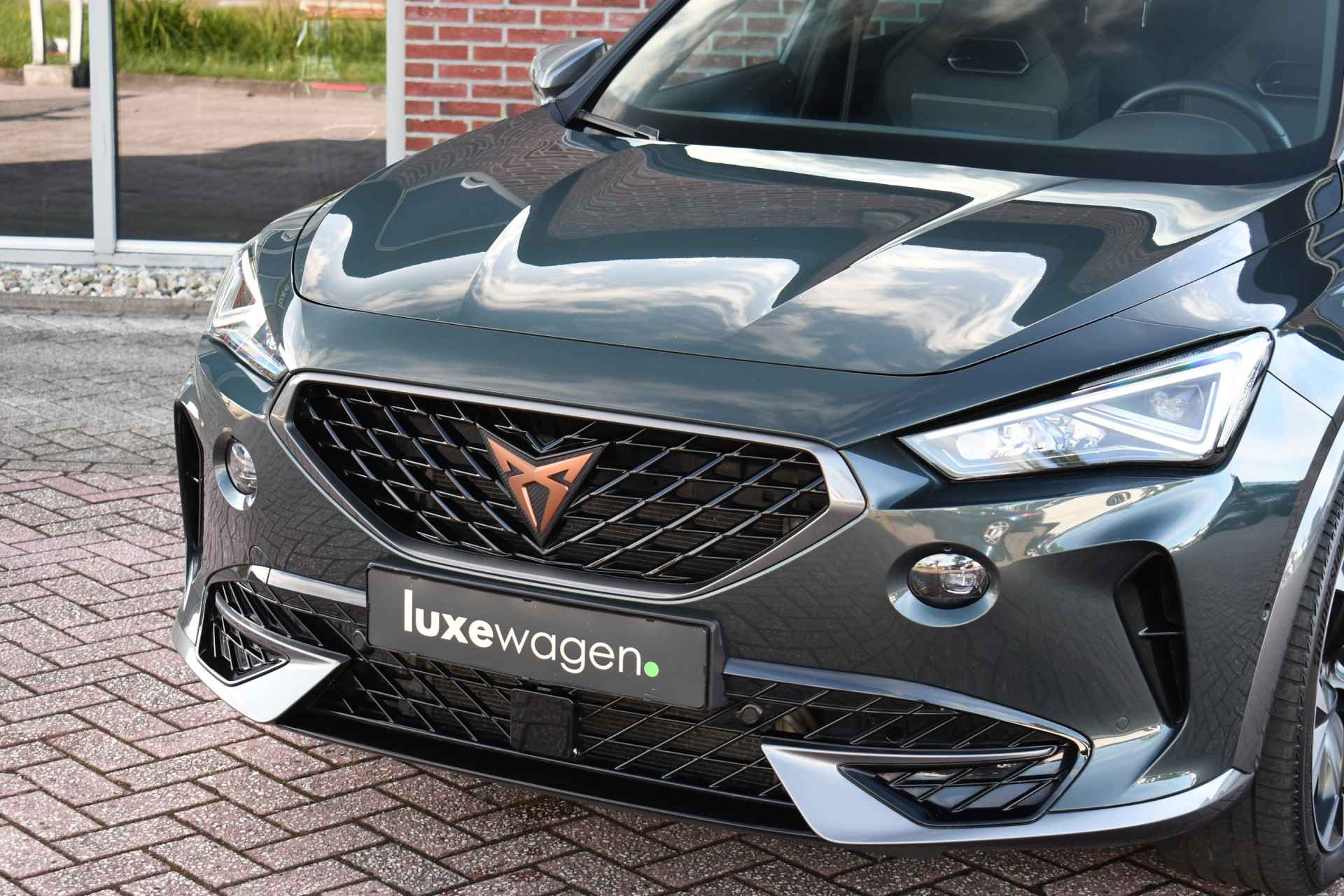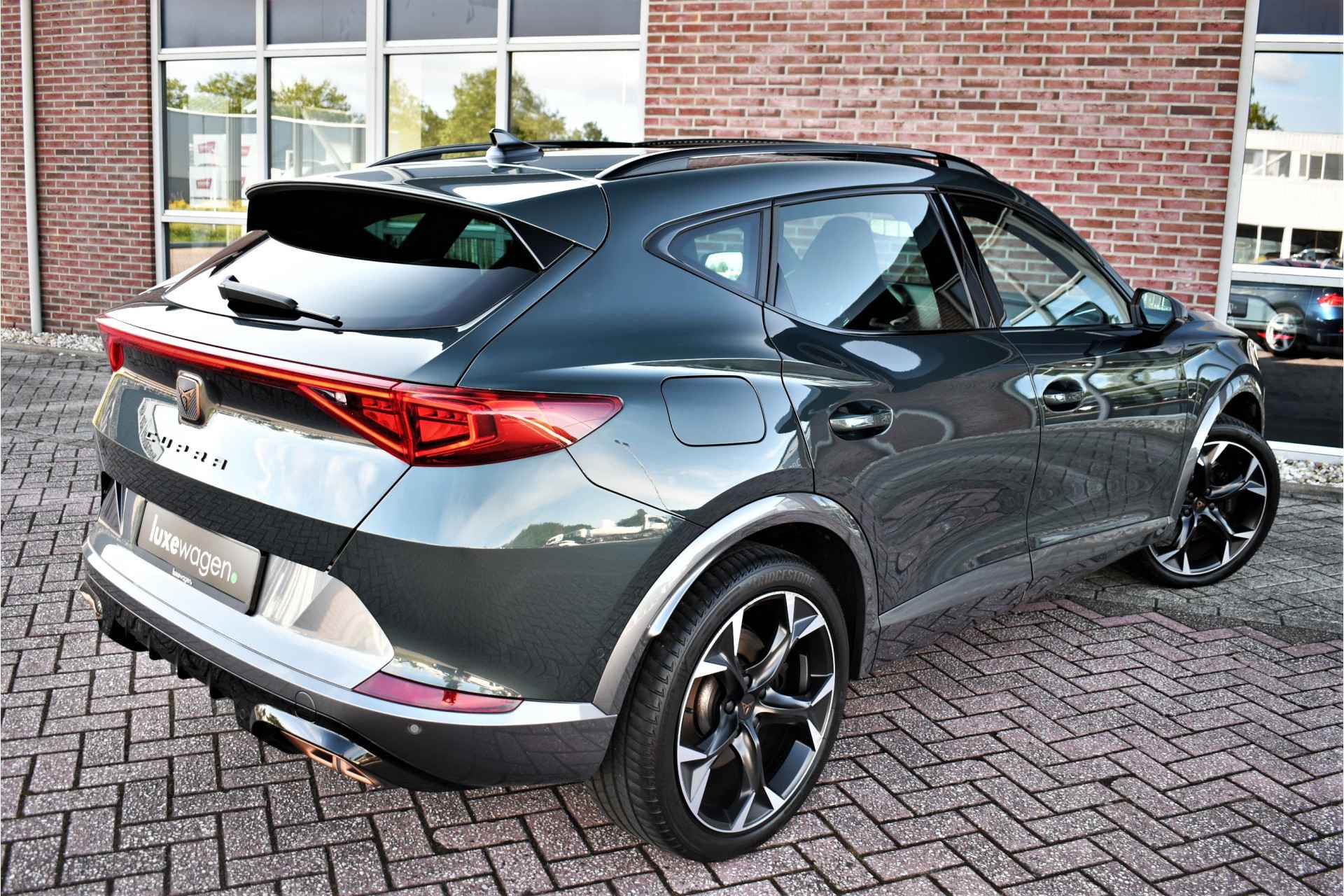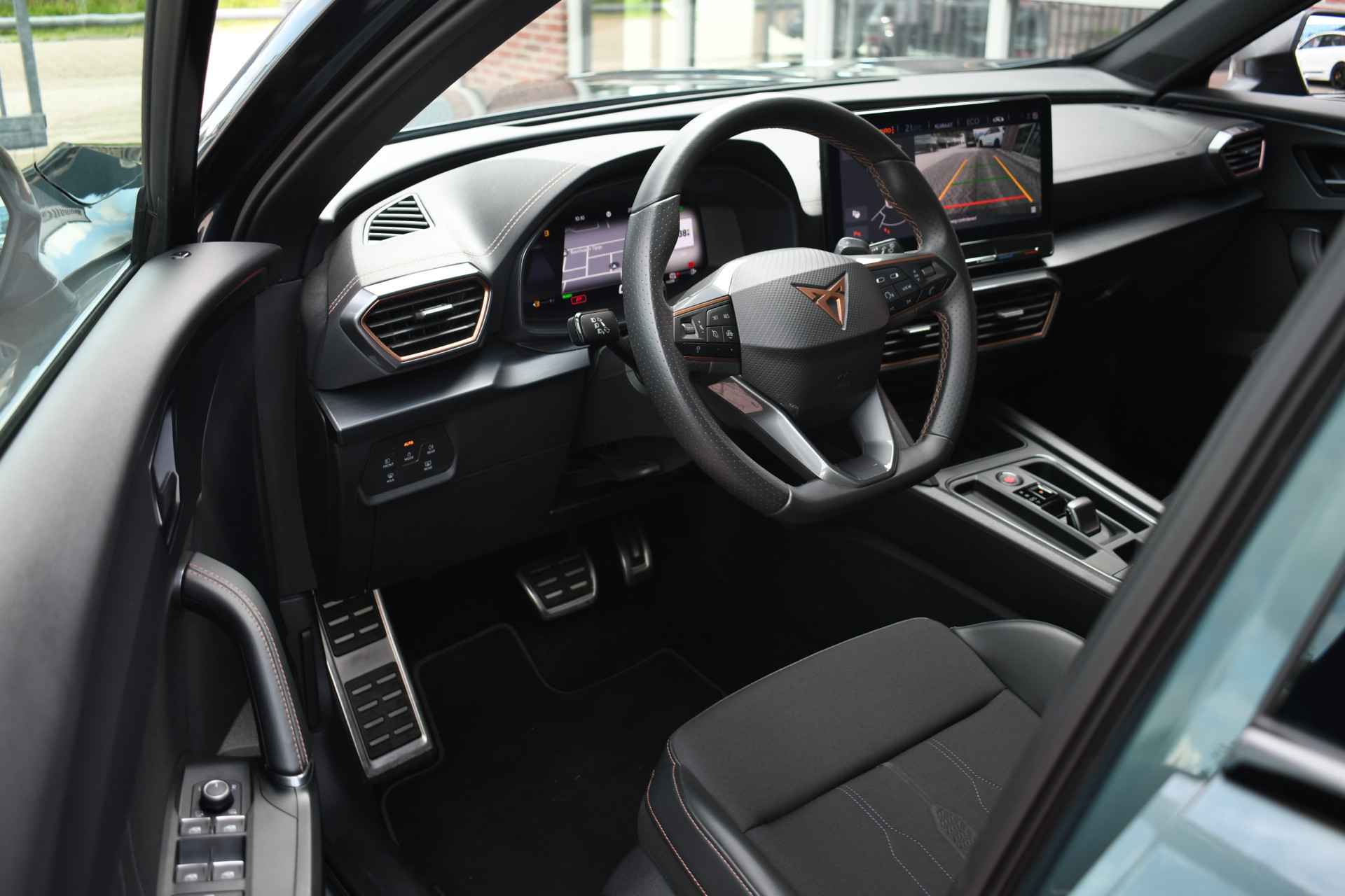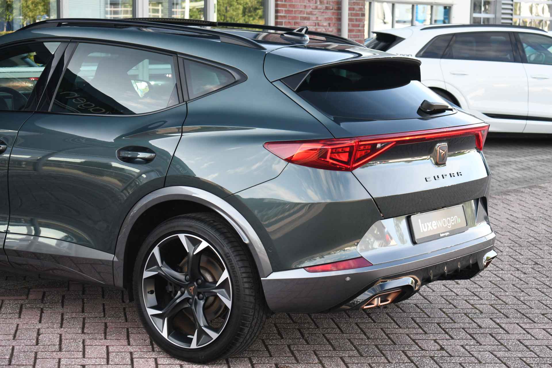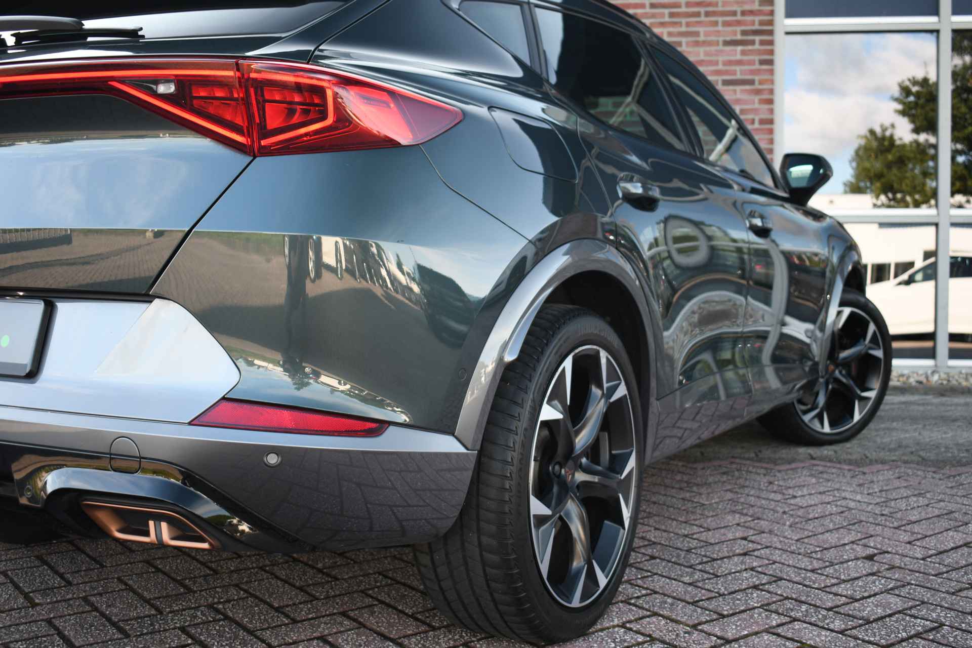 Deze volle Cupra Formentor VZ (met 245pk sterke hybride motor) is uitgevoerd in de kleur Dark-Camouflage en het betreft een BTW-auto, dus ondernemers kunnen de BTW terugvragen. Compleet met o.a. panoramadak, afneembare trekhaak (1500kg trekken), adaptieve cruise, adaptieve demping DCC, achteruitrijcamera, 19inch velgen, etc.