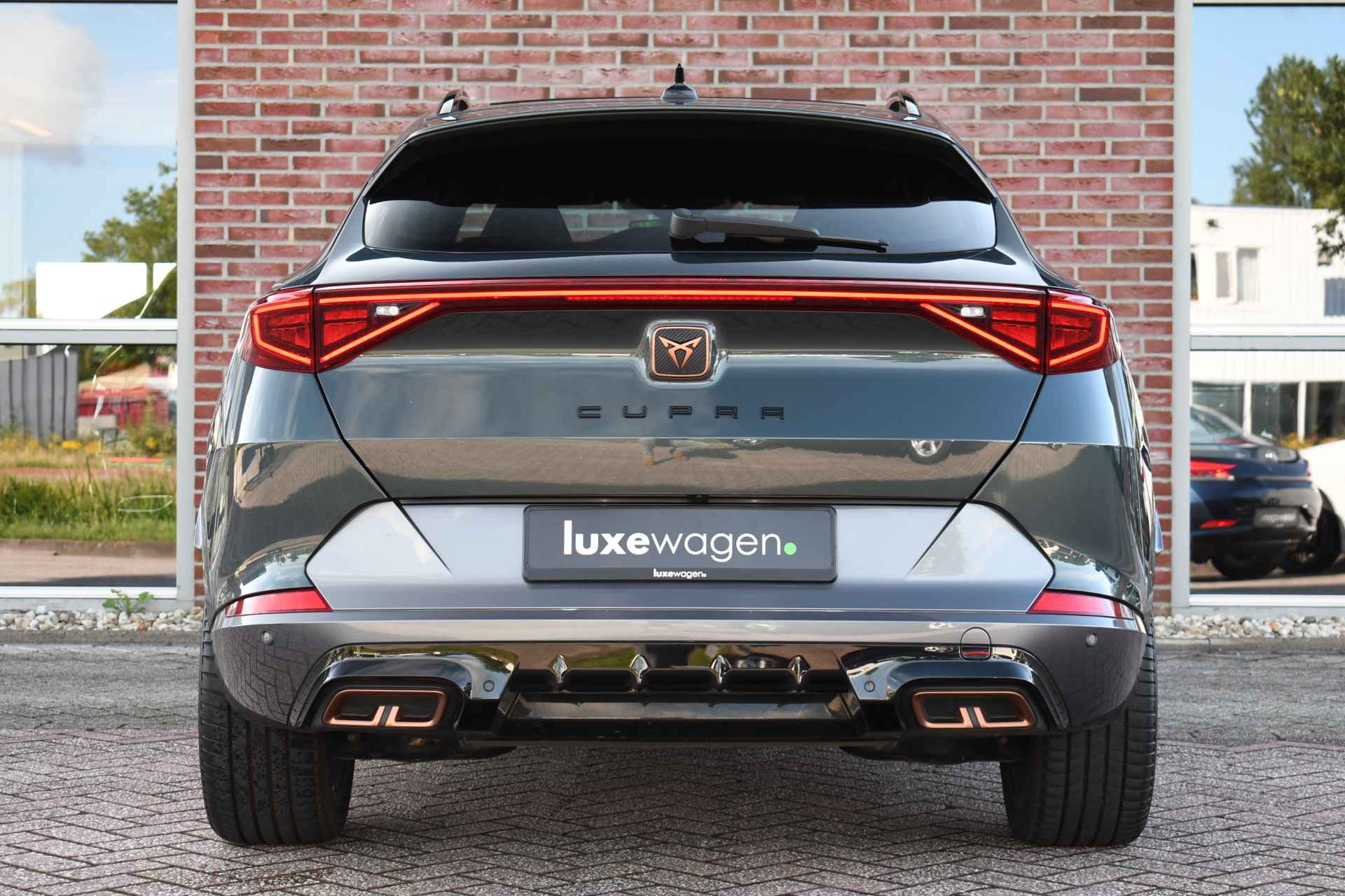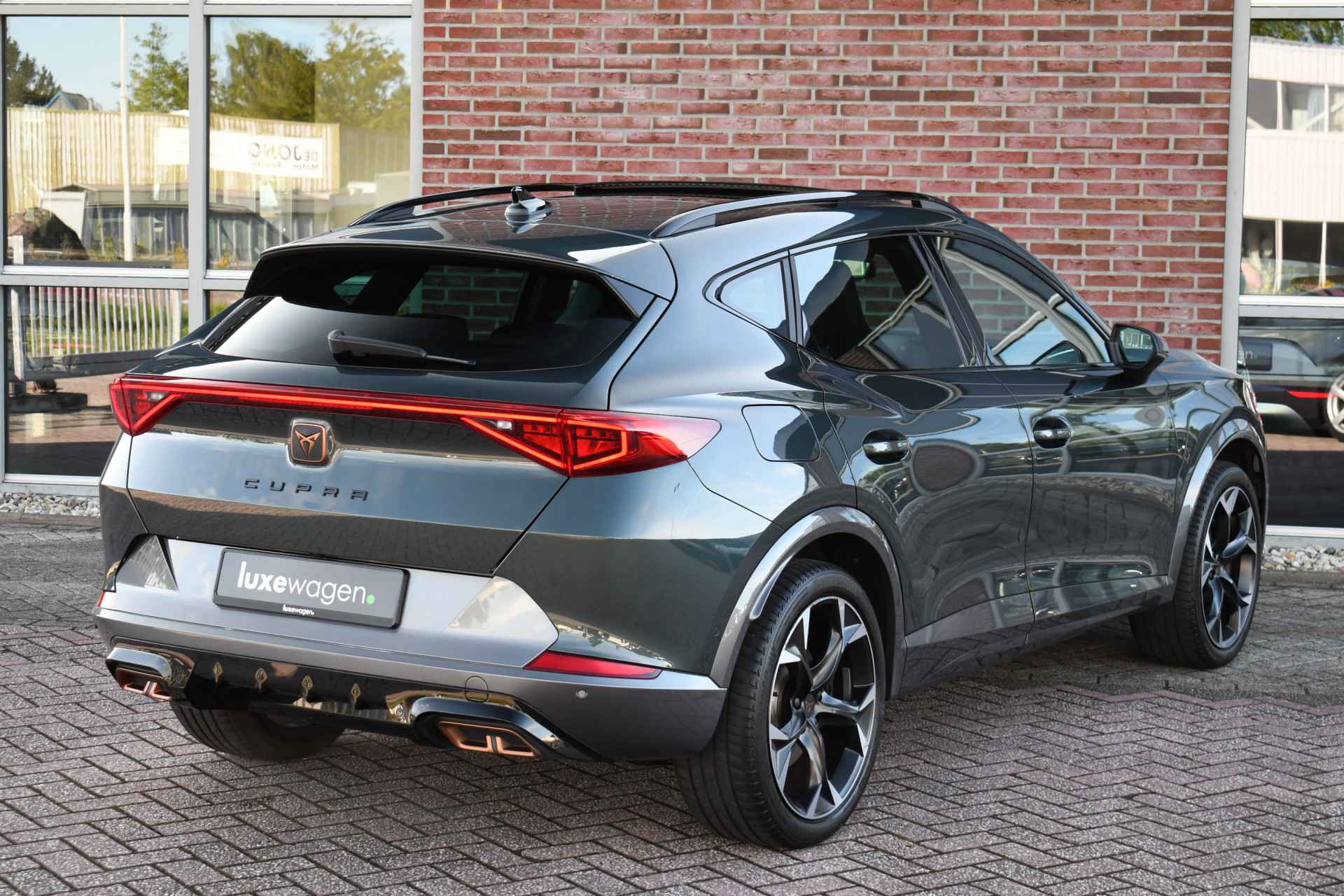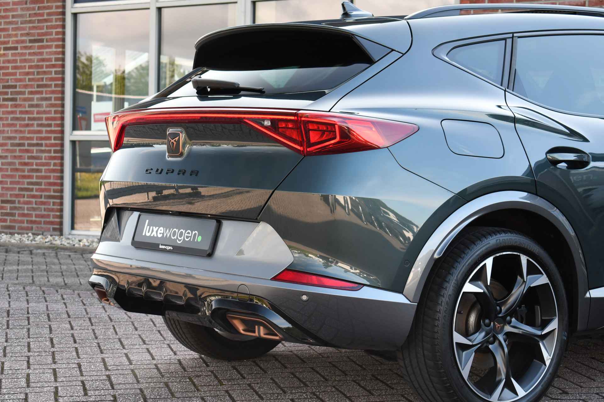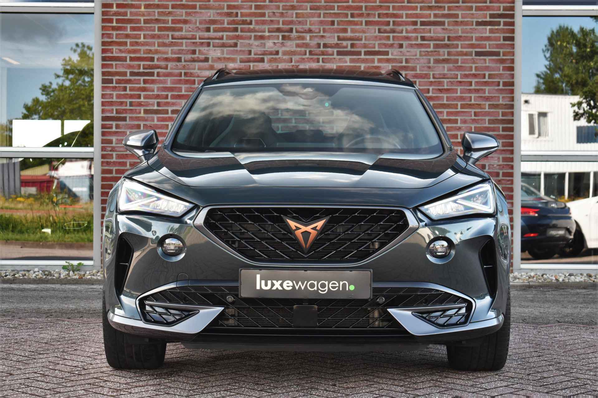 Deze volle Cupra Formentor VZ (met 245pk sterke hybride motor) is uitgevoerd in de kleur Dark-Camouflage en het betreft een BTW-auto, dus ondernemers kunnen de BTW terugvragen. Compleet met o.a. panoramadak, afneembare trekhaak (1500kg trekken), adaptieve cruise, adaptieve demping DCC, achteruitrijcamera, 19inch velgen, etc.