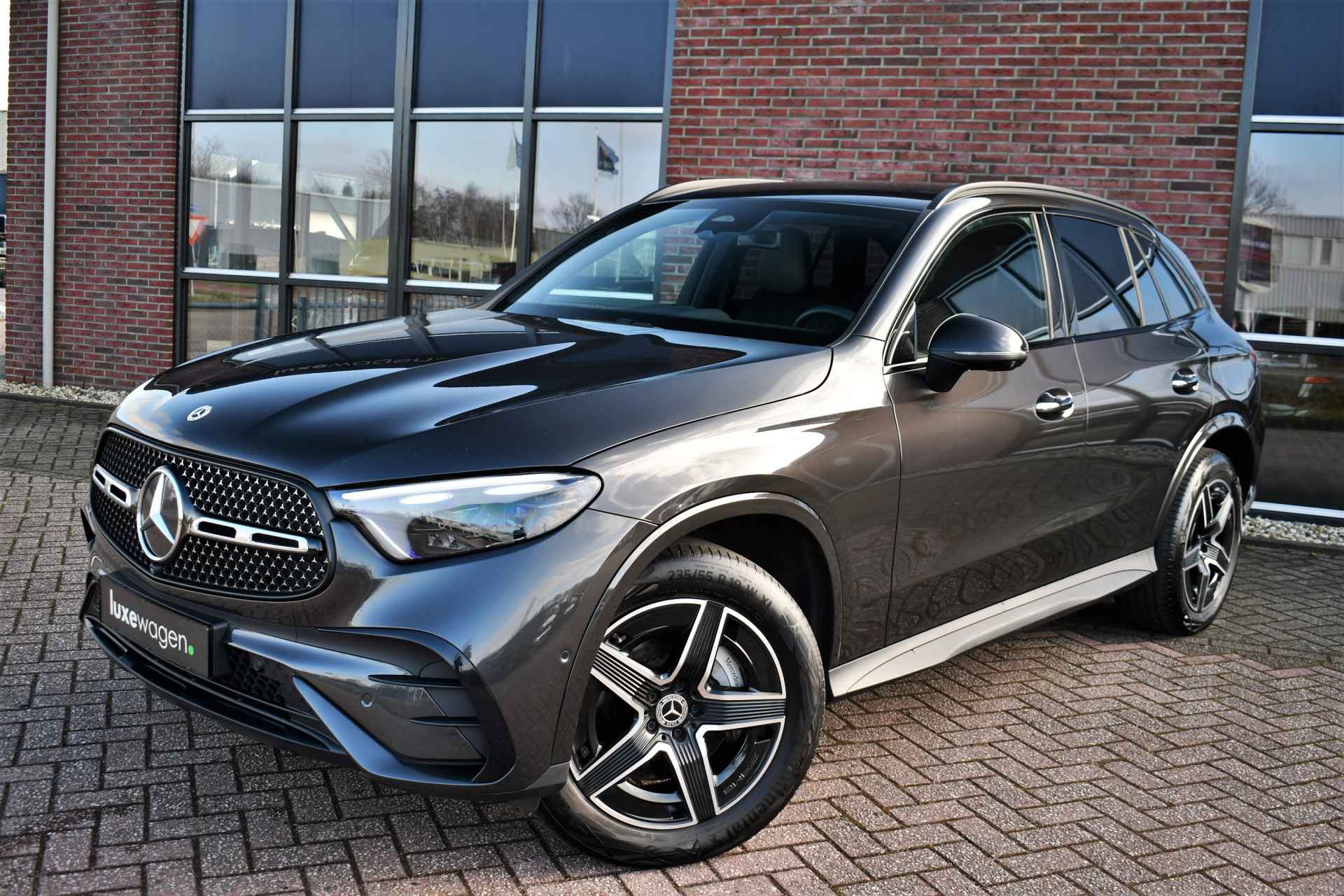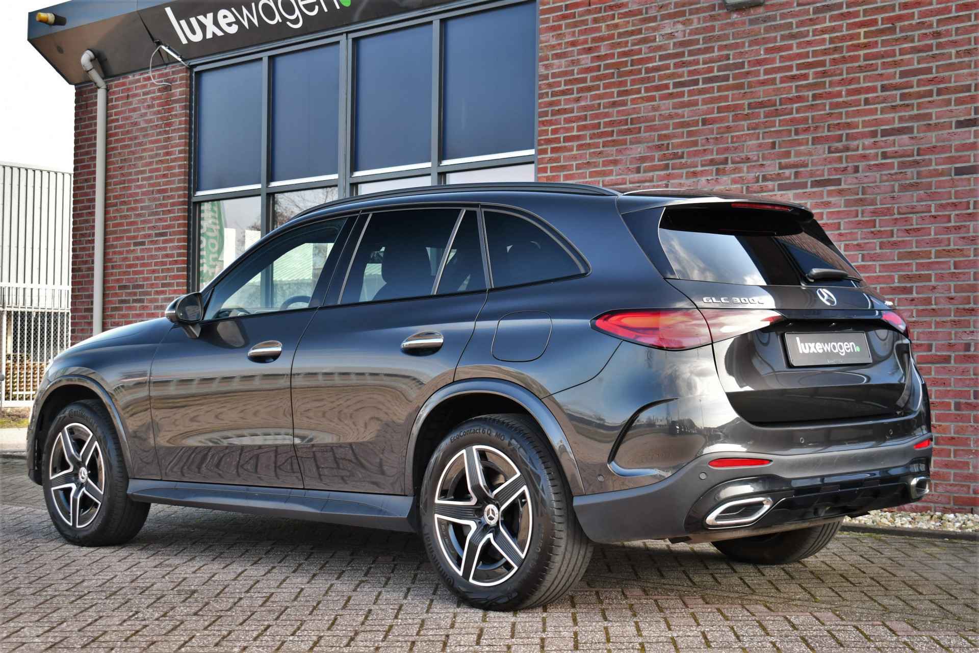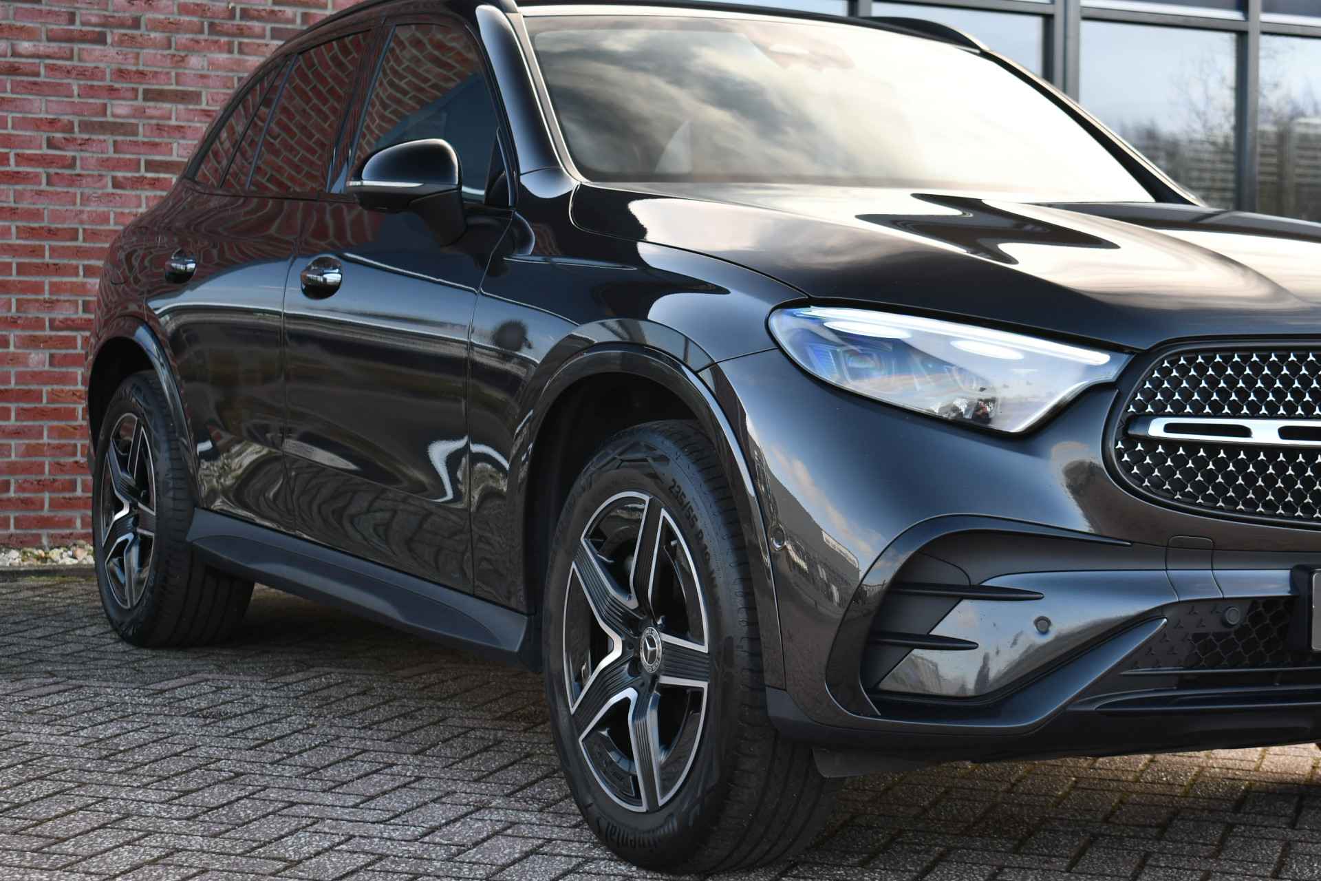 Zeer volle GLC 300e van het nieuwste model! Compleet met: AMG interieur en exterieur, Night pakket, Premium pakket (stoelen met geheugen en massage, matrix-LED, 360 camera, keyless entry), Rij-assistentie pakket (adaptieve cruise Distronic, rijstrooksensor en dodehoek detectie), elektrische trekhaak (2000kg trekken), lederen dashboard, etc! Keurig dealer onderhouden en een SOH van 94%.