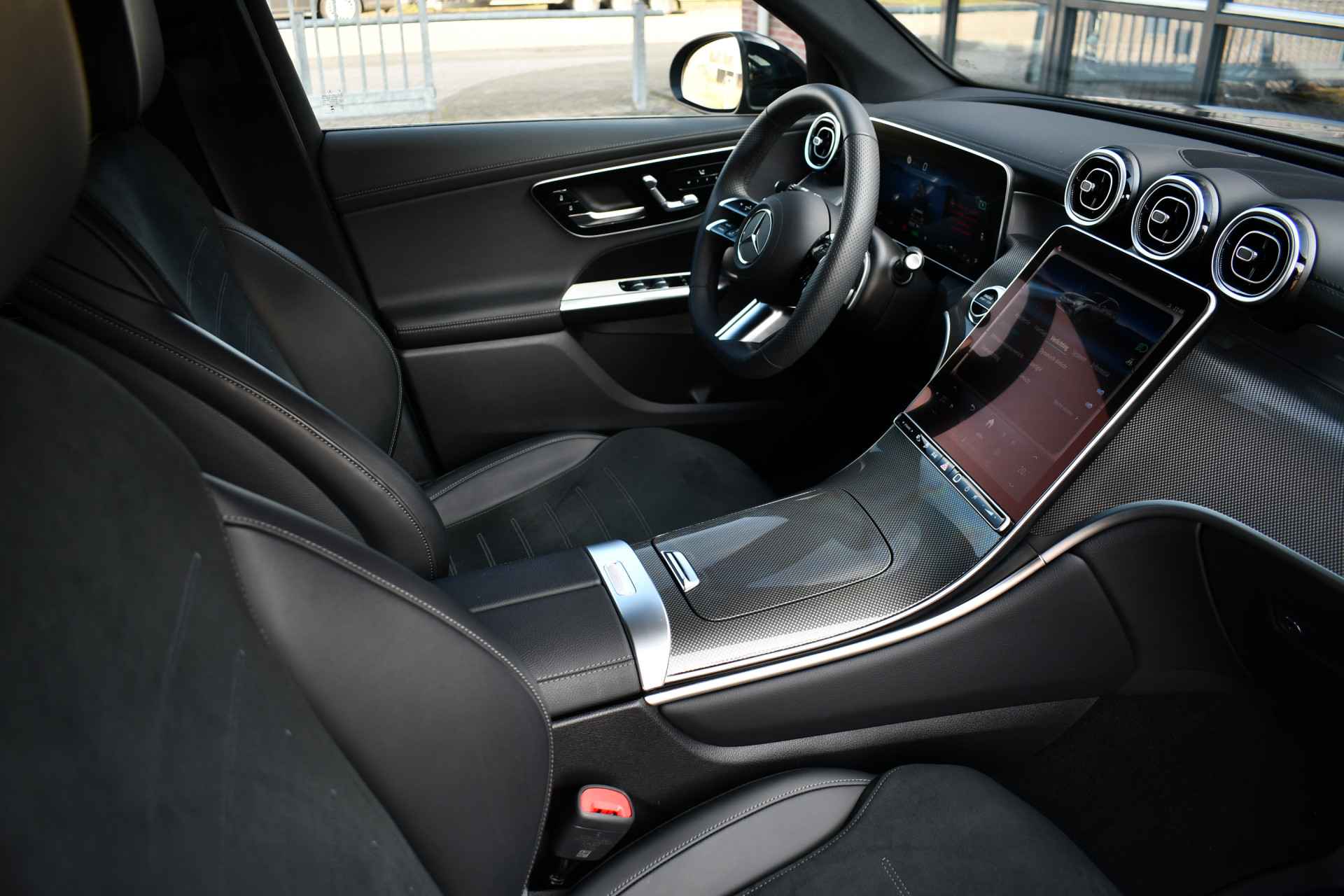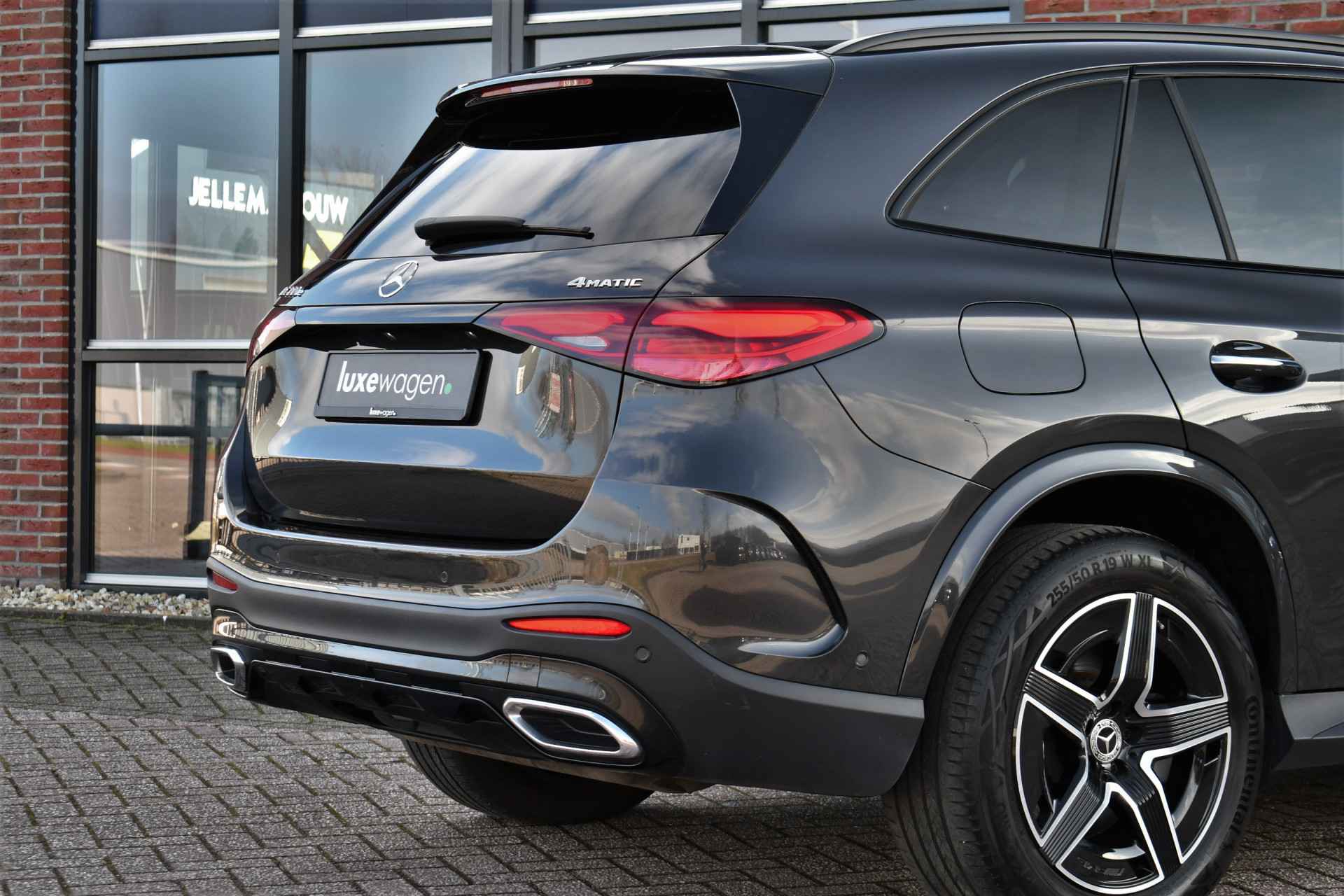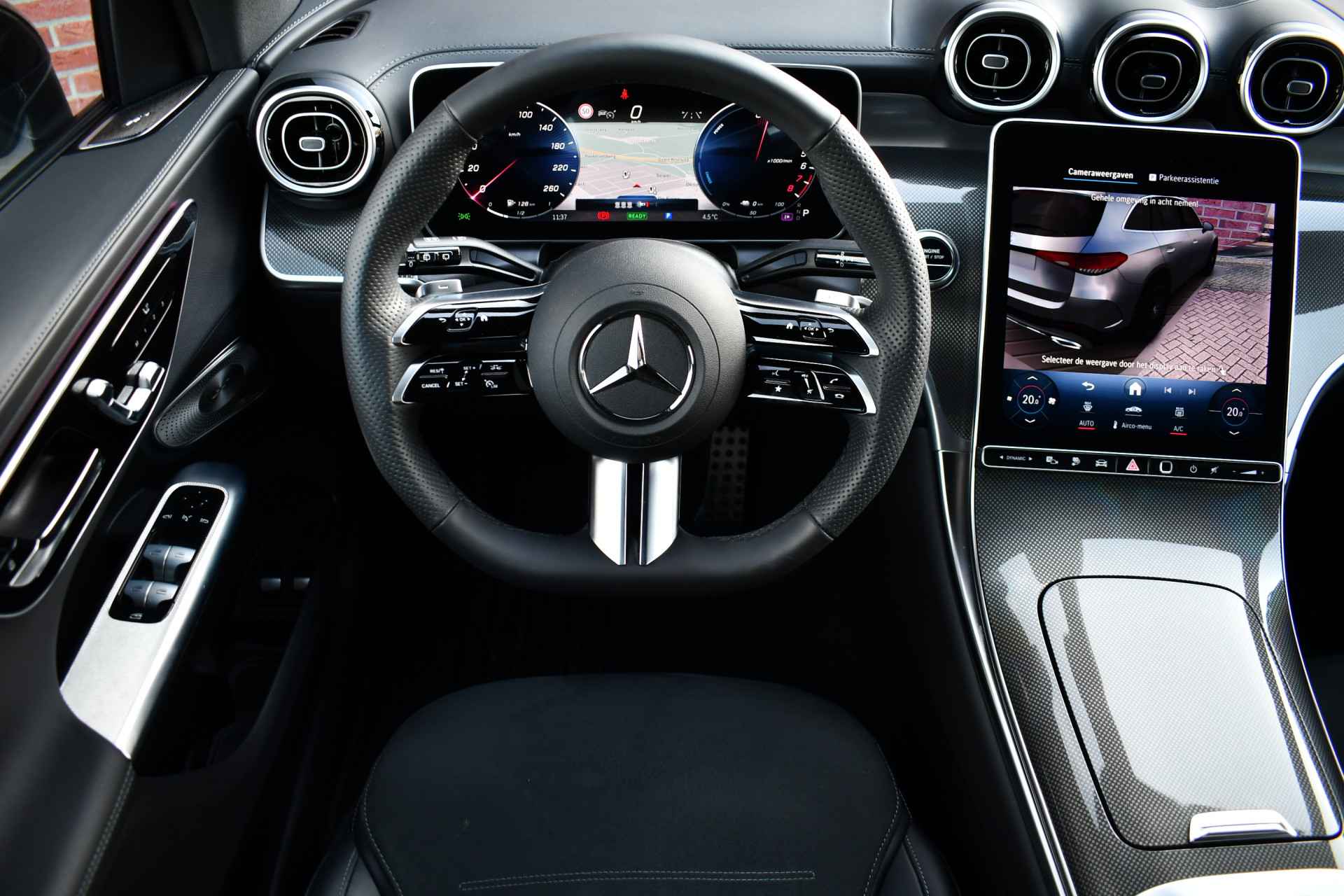 Zeer volle GLC 300e van het nieuwste model! Compleet met: AMG interieur en exterieur, Night pakket, Premium pakket (stoelen met geheugen en massage, matrix-LED, 360 camera, keyless entry), Rij-assistentie pakket (adaptieve cruise Distronic, rijstrooksensor en dodehoek detectie), elektrische trekhaak (2000kg trekken), lederen dashboard, etc! Keurig dealer onderhouden en een SOH van 94%.