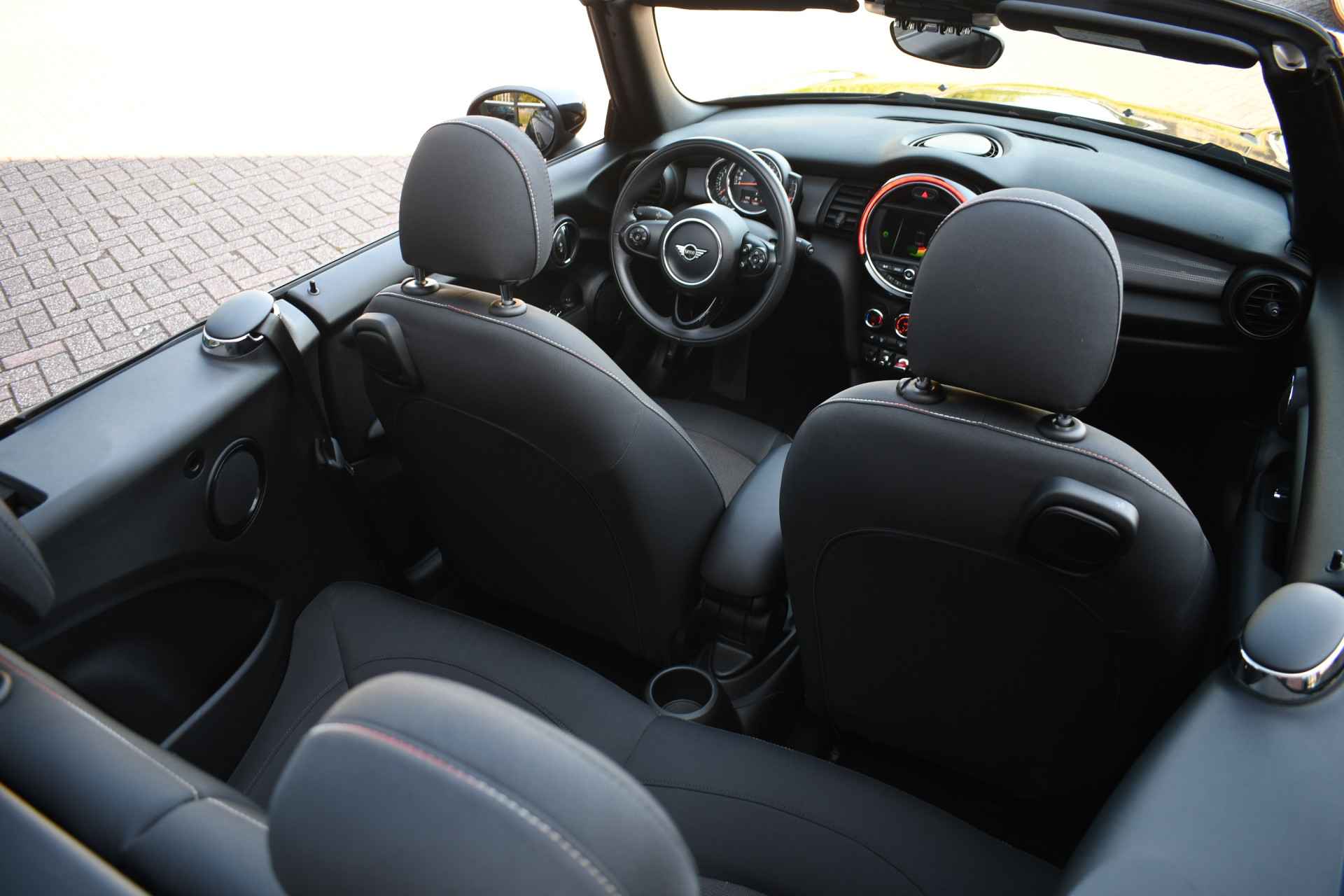 Keurige Mini Cabriolet afkomstig van de eerste eigenaar en compleet dealer onderhouden. Compleet met: 18 inch originele JCW wielen, LED koplampen en Union Jack achterlichten, DAB audio, etc!