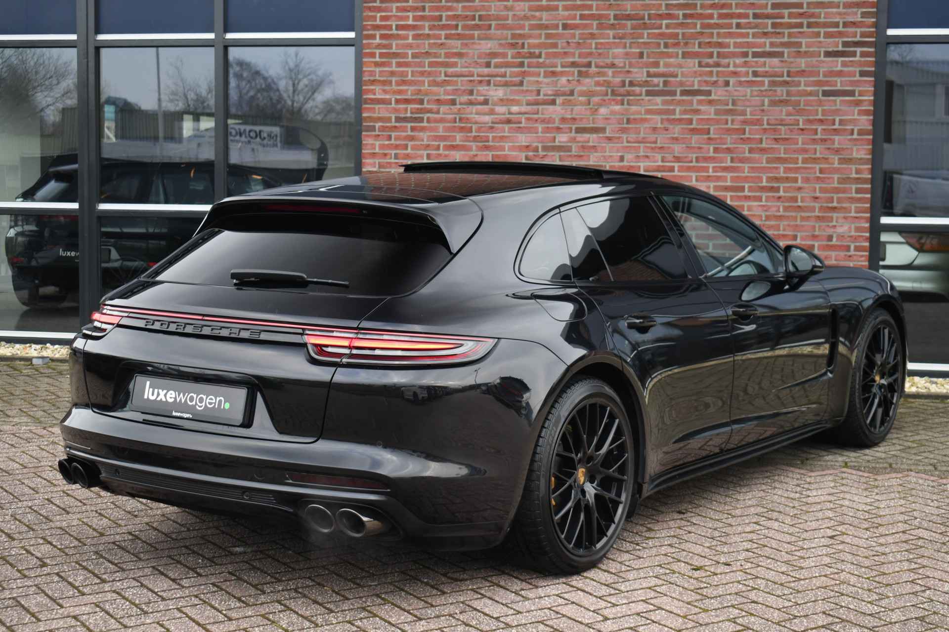 Let op! Auto is niet altijd aanwezig, bel of mail ons voor een afspraak. Gaaf uitgevoerde en nette Panamera Sport Turismo. Met: panoramadak, sport chrono pakket, BOSE audio, 21 inch velgen, gele remklauwen, alarm klasse 3 en 4, achteruitrijcamera, etc. Betreft een zeer scherpe internet meeneemprijs. Kijk op onze eigen website (luxewagen.nl) voor meer + HD-foto's. Niet alleen onze collectie is luxe, ook onze service! Met meer dan 20 jaar ervaring in de branche weten we dat service het belangrijkste is. Van goed en eerlijk advies voor de aankoop tot fantastische service na de aankoop. Ons team bestaat uit liefhebbers die hun vak verstaan.