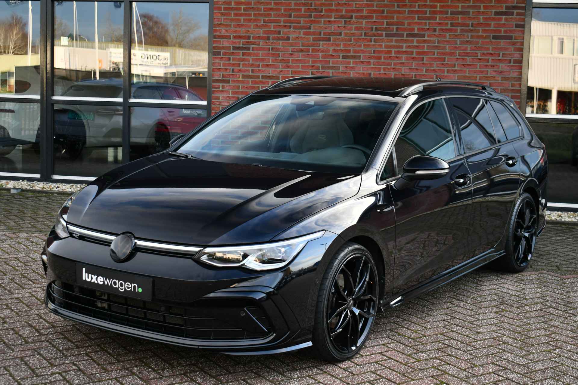 Bijzondere '1 of a kind' Golf Variant! Met R-Line exterieur en interieur, 19 inch wielen, verlagingset, wegklapbare trekhaak (1500kg), adaptieve cruise control, camera achter, adaptieve demping (DDC), etc!